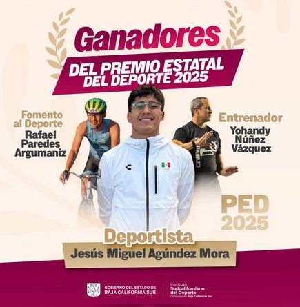Luego de concluir la votación secreta del jurado calificador, el Instituto Sudcaliforniano del Deporte (INSUDE) dio a conocer a los ganadores del Premio Estatal del Deporte 2025, informó el titular del instituto, Noé Fiol Verduzco, destacando la importancia de reconocer el esfuerzo y la dedicación de las y los talentos deportivos de Baja California Sur.