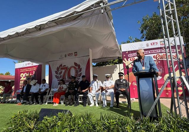 Asimismo, en el marco de esta ceremonia realizada en la escuela secundaria estatal “Benito Juárez”, que celebra su 70 aniversario de fundación, reconoció el trabajo de maestras, maestros y personal de apoyo a la educación por su contribución a la formación de generaciones de sudcalifornianos.