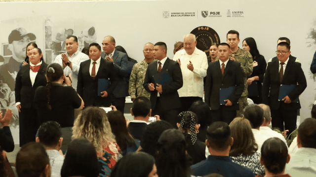 Durante la ceremonia, realizada en el Centro de Convenciones de La Paz, se entregaron los documentos de conclusión de estudios, así como reconocimientos a quienes obtuvieron calificaciones destacadas. En el acto, familiares de los graduados colocaron la insignia oficial de la PGJE, símbolo de la responsabilidad que ahora asumen.