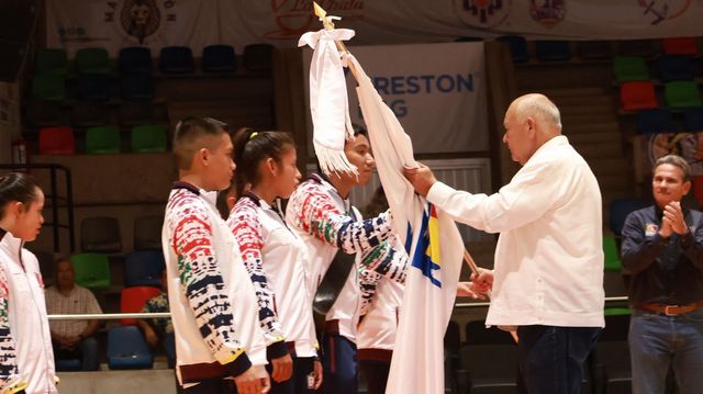 En este acto, el mandatario estatal entregó la bandera sudcaliforniana a las y los 48 atletas, entrenadores y delegados que integran la representación, invitándoles a portarla con compromiso, dignidad y amor por su estado.