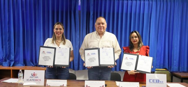 El Instituto de Capacitación para los Trabajadores de Baja California Sur (ICATEBCS) y el Centro de Estudios de Bachillerato 8/2 (CEB 8/2) firmaron un convenio de colaboración con el propósito de impulsar el desarrollo de competencias laborales, la formación técnica y la certificación ocupacional de la comunidad estudiantil.