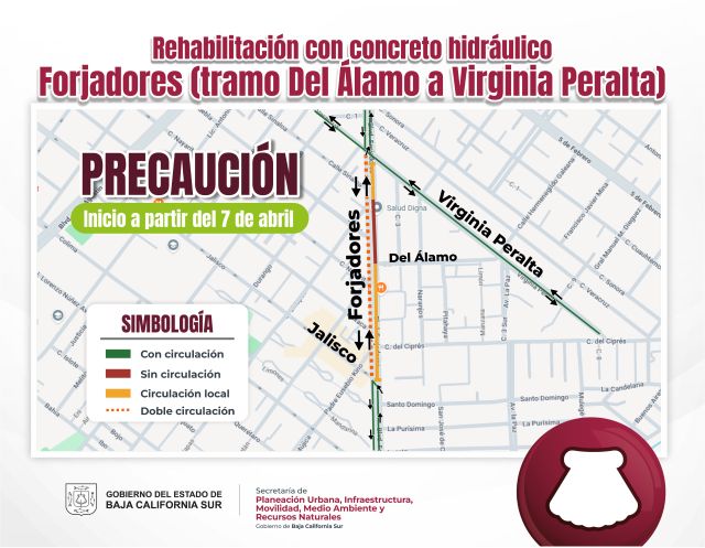 Con el objetivo de mejorar la seguridad y eficiencia en los traslados de automovilistas, el Gobierno del Estado iniciará este martes 7 de abril la reconstrucción de un tramo del bulevar Forjadores de Sudcalifornia, a través de la Secretaría de Planeación Urbana, Infraestructura, Movilidad, Medio Ambiente y Recursos Naturales (SEPUIMM).