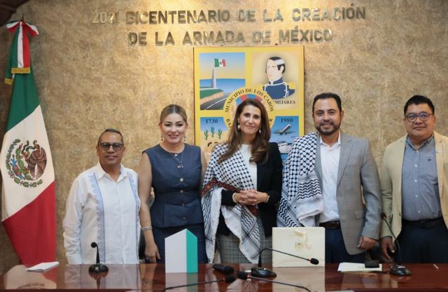 El alcalde Christian Agúndez, con directoras y directores que forman parte de su gabinete y el diputado federal Luis Armando Díaz, reafirmó el respaldo del municipio hacia el pueblo palestino y resaltó la importancia de la diversidad cultural en Los Cabos. Comentó que la vía pacífica siempre debe ser la primera opción para la resolución de cualquier conflicto, reiterando que el municipio trabaja bajo principios de concordia, fraternidad y cooperación entre sociedad, sector empresarial y gobiernos.