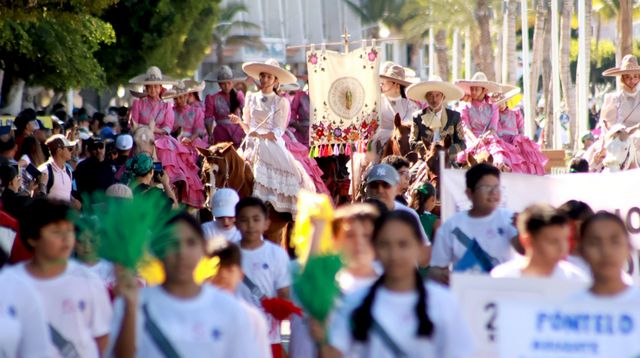 El desfile cívico-deportivo incluyó la participación de 178 integrantes de la Marina Armada de México, mil 345 docentes, administrativos y alumnos de diversos niveles educativos, 50 elementos de la Secretaría de Seguridad Pública, 157 deportistas destacados, 810 integrantes de asociaciones deportivas, 53 vehículos terrestres, 2 motos acuáticas, 1 embarcación, 267 jinetes y 18 binomios caninos, demostrando la unión de la sociedad y la fuerza de nuestras tradiciones.
