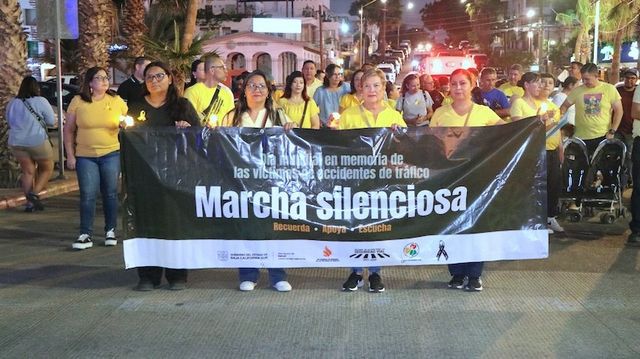 El Gobierno del Estado, a través de la Secretaría de Salud, llevó a cabo este fin de semana una marcha silenciosa en La Paz, en el marco del Día Mundial en Recuerdo de las Víctimas de Accidentes de Tránsito, con el objetivo de sensibilizar a la población sobre la importancia de aplicar medidas de seguridad vial.